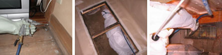 床下や周囲の土壌や、住居の木部に薬剤処理を行います。